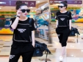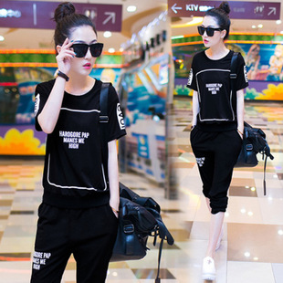 2015歐洲站夏新款女裝字母短袖T恤+松緊腰修身哈倫褲時尚休閑套裝 /