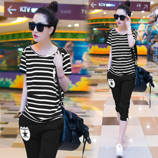 2015夏季新款韓版時尚條紋顯瘦T恤上衣+哈倫褲套裝廠家直銷好質量 /