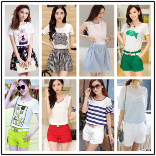 簡介: 貨號 5188011 產(chǎn)地 廣州 主圖來源 實(shí)拍有模特 貨源類別 現(xiàn)貨 是否庫存 是 庫存類型 雜款 風(fēng)格 甜美 圖案 印花 面料 雪紡/喬其紗 款式 褲套裝 上衣款式 T恤 上衣袖長 短袖 褲款式 直筒褲 褲長 短褲 流行元素 印花 工藝 印花/印染 上市年份/季節(jié) 2015夏季 顏色 多款多色混批 尺碼 多色多碼混批