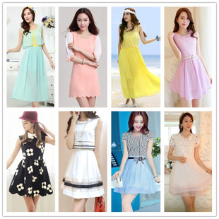 2015年夏新款特價(jià)時(shí)尚女裝地?cái)傌浽蠢俳z雪紡棉短袖連衣裙外貿(mào)原單 /