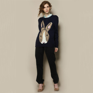 2014新歐美高端復古小兔女裝針織衫毛衣學院氣質 /