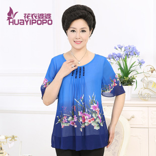廠家批發2015新款中老年女裝夏裝媽媽裝短袖雪紡衫 t恤加大碼上衣 /