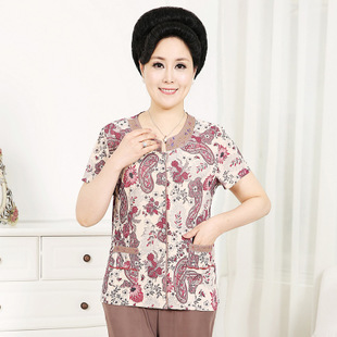 2015新款夏中老年女開衫套裝 中年媽媽裝圓領短袖九分褲套裝 /
