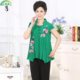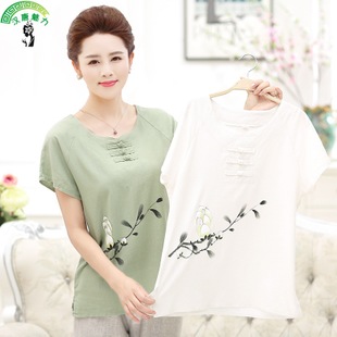 2015夏裝中老年女裝t恤 民族風繡花大碼媽媽裝短袖上衣地攤價批發 /