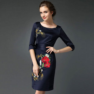 實拍2015女秋裝新款高貴氣質晚宴禮服旗袍刺繡連衣裙 /