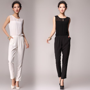 女裝批發(fā) 新款明星同款雪紡連體褲 韓版簡約小腳連衣九分褲 /