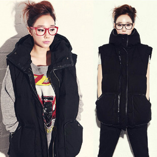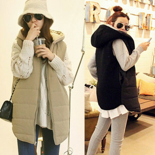 2014韓國SZ中長款羽絨棉衣外套無袖馬甲女秋冬 連帽 大碼背心大衣 /
