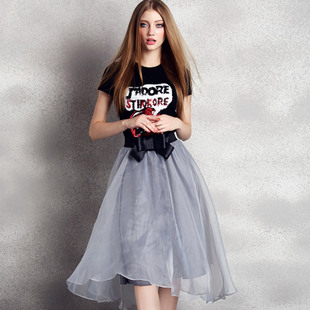 歐美夏季珠片修身T恤+歐根紗半身裙蓬蓬裙時尚套裝裙 /