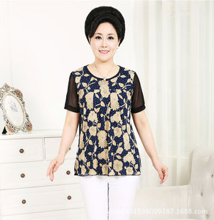 新款中老年女裝夏季中袖T恤中年人蕾絲媽媽裝夏裝短袖蕾絲衫批發(fā) /