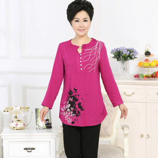 2015新款中老年女裝春裝上衣 長袖T恤時尚媽媽印花打底衫批發 /