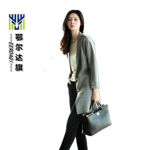 秋冬羊絨衫中長款修身女100純羊絨開衫外貿原單加厚翻領外套正品 /