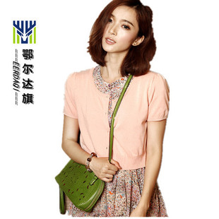 2015夏季短款純色半短袖開衫針織馬甲背心鄂爾多斯羊毛衫女恒源祥 /