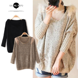 廠家直銷/韓版女裝甜美毛毛裝飾蝙蝠型寬松針織套頭毛衣1108 /