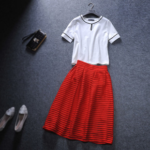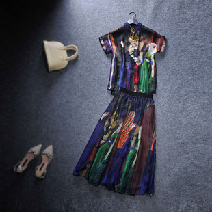 2015夏季新款歐美氣質印花半身裙女兩件套裝 /