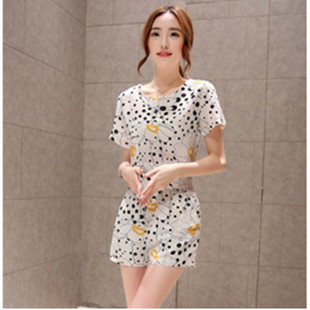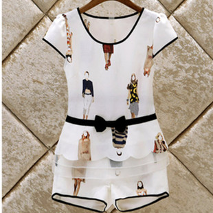 2015夏裝新款韓國名媛麻料印花百搭短褲套裝 /