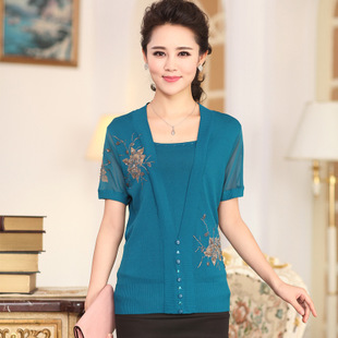 2015夏裝新款中老年裝 短款大碼寬松紗袖年輕媽媽裝 短袖假開衫 /