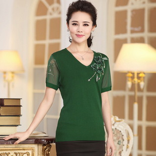 2014夏裝爆款中老年裝 大碼夏季短袖冰絲韓版中老年女裝t恤批發 /