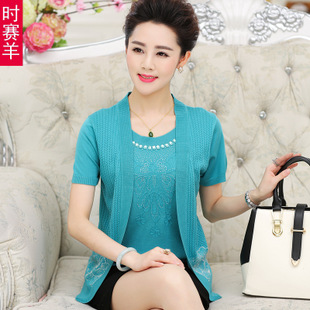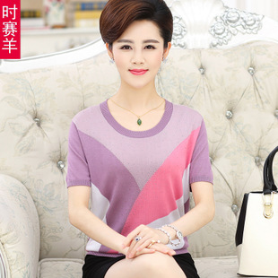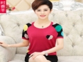 2015夏裝新款花色針織衫 圓領套頭短袖媽媽裝t恤 中老年女裝批發 /