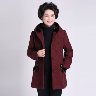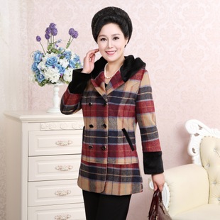 中老年女裝 2014秋冬新款毛呢外套韓版中長款連帽媽媽裝 風衣外套 /