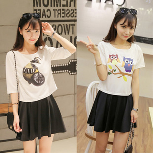 簡介: 貨源類別 現貨 主圖來源 實拍有模特 風格 歐美學院 圖案 印花 工藝 印花/印染 產地 廣州 庫存類型 整單 款式 基本款 組合形式 兩件套 裙長 短裙 裙型 A字裙 領型 圓領 袖型 常規袖 袖長 七分 腰型 中腰 上市年份/季節 2015夏季 面料名稱 混紡 是否庫存 是 貨號 1010 顏色 貓頭鷹短袖,貓頭鷹七分袖,檸檬短袖,檸檬七分袖 尺碼 S,M,L,XL,XXL 成分 棉 面料主材質含量 81%-90% 面料 混紡 面料次要材質分類 合成纖維 成分含量 95%以上 面料次要材質含量 81%-90% 面料主材質 棉花 面料次要材質 聚酯纖維(滌綸) 面料主材質分類 棉纖維
