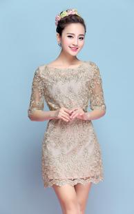 實拍2015夏季新款韓版高檔氣質修身中袖打底裙金線蕾絲連衣裙代發 /