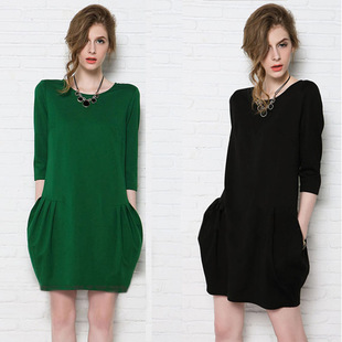 歐美2015新款加大碼女裝胖MM春秋裝寬松顯瘦花苞長袖連衣裙 /