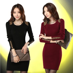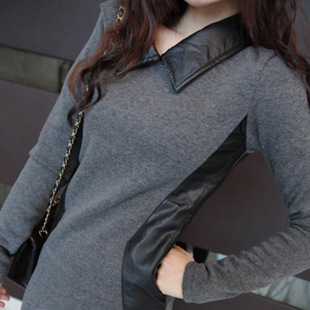 優質版 2014秋冬裝韓版拼皮加絨加厚翻領打底OP打底衫連衣裙 /