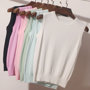 2015夏季新款韓版純色無袖針織冰絲背心女百搭打底衫 /