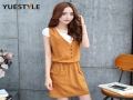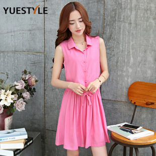 連衣裙2015夏季新款無袖翻領設計紐扣裝飾一件代發女裝 /