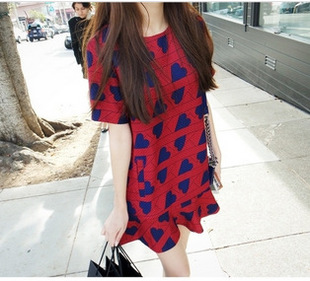 加肥加大胖MM女裝2015春裝新款韓版大碼顯瘦荷葉邊心形短袖連衣裙 /