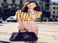 2015王麗坤明星同款套裝條紋襯衫雪紡衫上衣+開叉包臀半裙兩件套 /