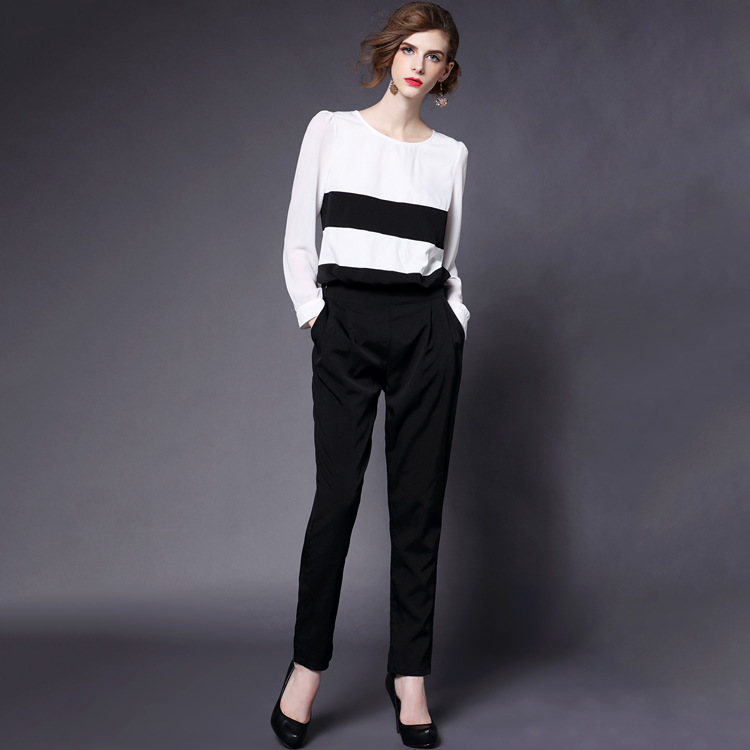 歐洲站女裝2015秋裝新款寬松長褲 歐美時尚顯瘦可拆卸條紋連體褲 /