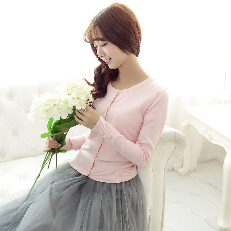 品牌直銷日韓系甜美可愛型氣質毛衣女 圓領修身長袖針織開衫外套 /