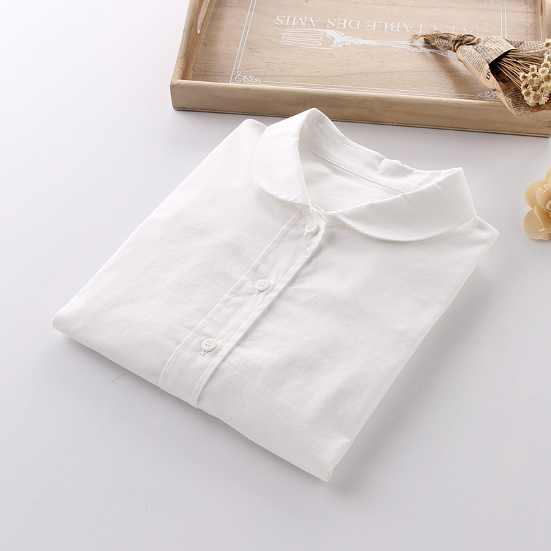 2015秋冬款 休閑修身彼得潘領白襯衫女 長袖修身白襯衣文藝上衣 /
