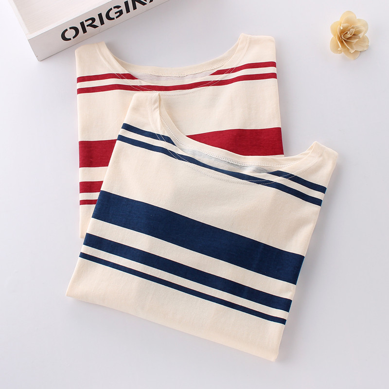 簡介: 貨源類別現貨 產地上海 面料名稱純棉 主面料成分棉 主面料成分的含量97(%) 主面料成分2棉 主面料成分2的含量3(%) 主圖來源實拍無模特 圖案條紋 風格文藝復古 款式套頭 袖長七分 工藝印花/印染 是否庫存否 貨號A47 品牌Theforestant 版型寬松型 衣長普通款(50cm<衣長≤65cm) 領型圓領 袖型常規袖