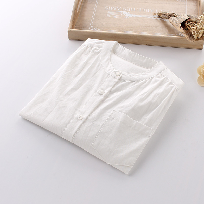 2015秋裝新款文藝清新立領純棉寬松長袖BF風純棉白襯衫女 /