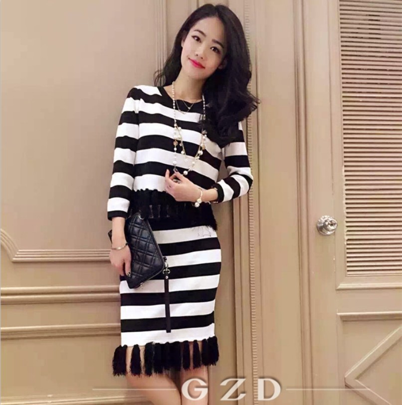 簡介: 貨號xj122 1151 產地廣州 主圖來源其他來源 貨源類別現貨 是否庫存是 庫存類型整單 風格歐美 圖案條紋 款式裙套裝 上衣款式針織衫 上衣袖長長袖 裙長短裙 流行元素流蘇 上市年份/季節2015秋季 面料名稱針織 主面料成分棉 主面料成分的含量60(%) 顏色黑色,黑條紋 尺碼均碼