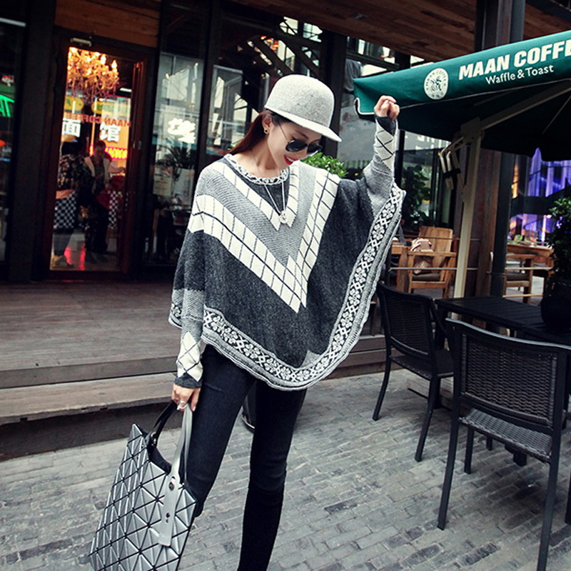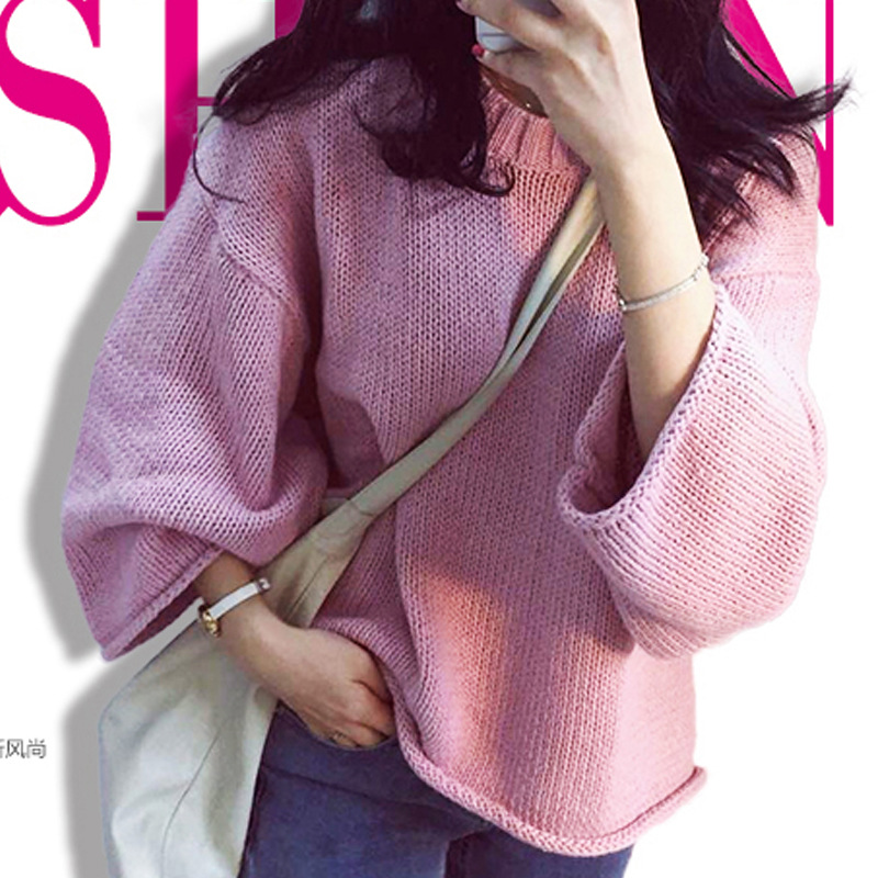 2015秋季新款服裝女裝韓版針織衫不規(guī)則蝙蝠衫寬松大碼羊毛衫毛衣 /