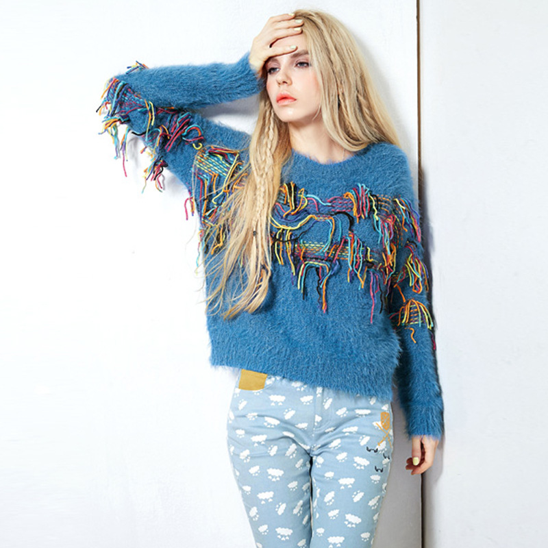歐美新款毛衣外套休閑寬松大碼女裝流蘇長袖針織衫女式秋服裝批發(fā) /