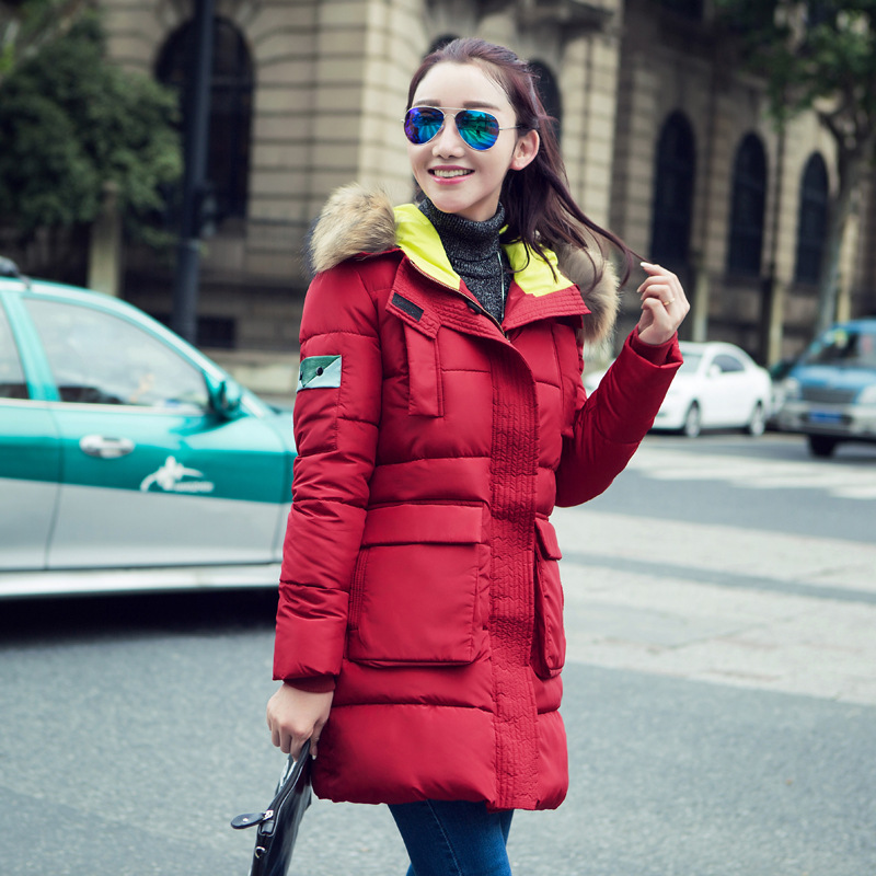 2015冬季新款韓版連帽羽絨服中長款女裝防水保暖棉衣實拍 /