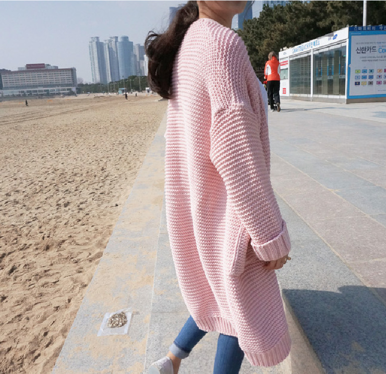 秋冬女裝 韓版寬松 針織衫毛衣外套中長款 長袖 開衫 /