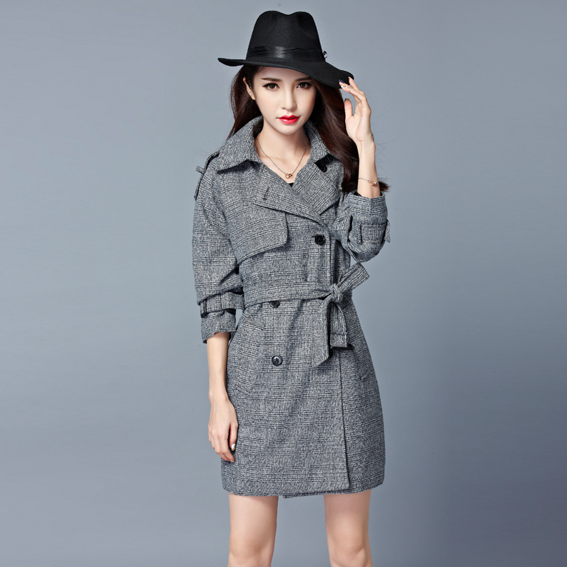 歐洲站2015秋裝新款韓版雙排扣中長款大衣修身顯瘦女士風衣外套女 /