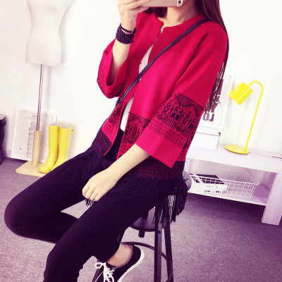 2015秋季韓版女裝寬松針織開衫中長款流蘇大碼顯瘦毛衣披肩短外套 /
