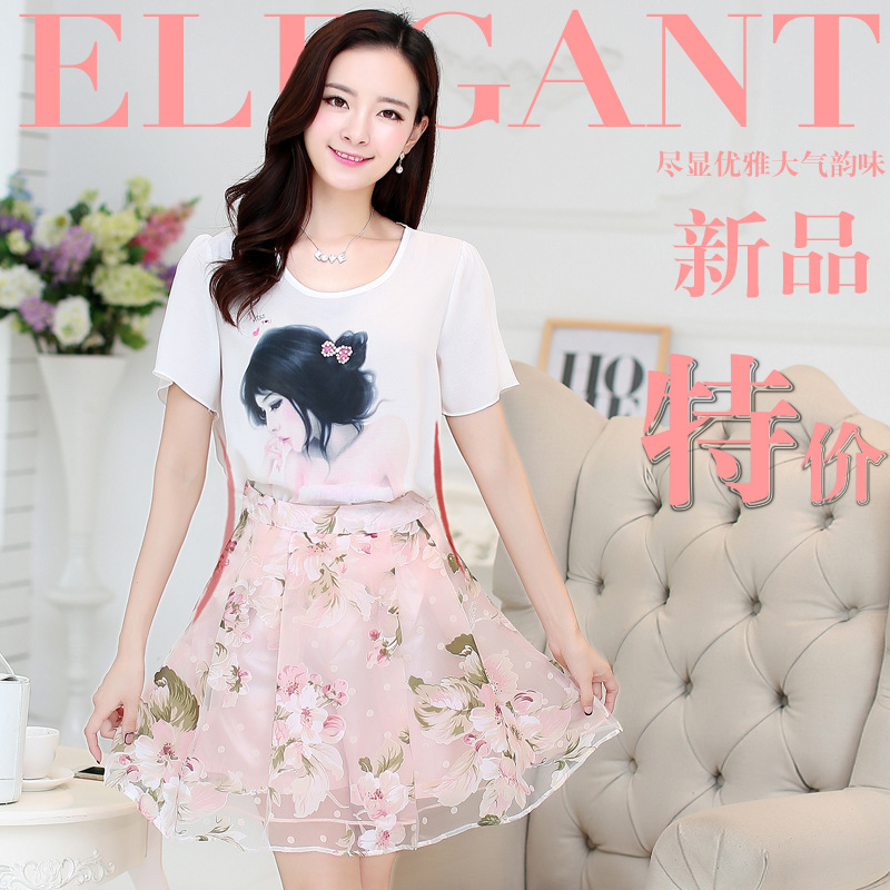 雪紡連衣裙夏兩件套2015夏裝新款甜美小清新套裝裙子女中裙a字裙 /