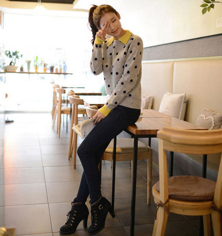 套頭百搭顯瘦圓點針織衫女打底毛衣 /