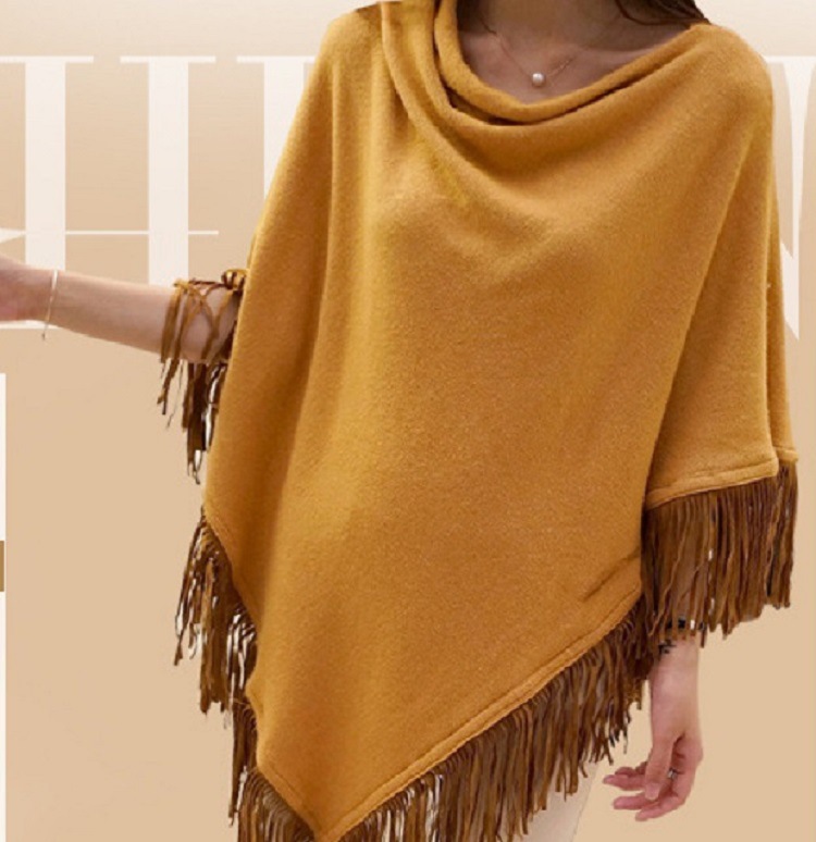 2015秋裝新款女裝不規(guī)則流蘇針織衫套頭披肩 韓版 /