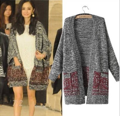 楊冪同款 2014秋裝新款女裝毛衣外套女 寬松撞色歐美針織衫開衫 /