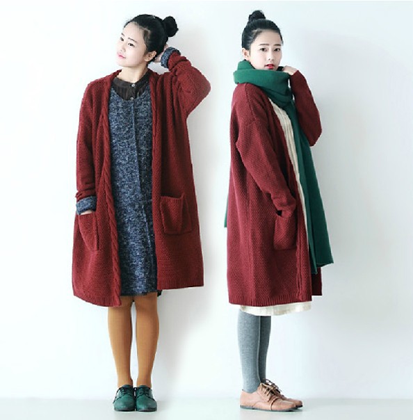 【伙拼】秋冬款敘舊百搭厚款開衫 長款針織衫毛衣女 文藝百搭毛衣 /