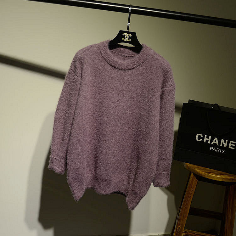 2015秋冬新款 韓國東大門代購韓版套頭寬松大碼仿貂絨毛衣外套女 /
