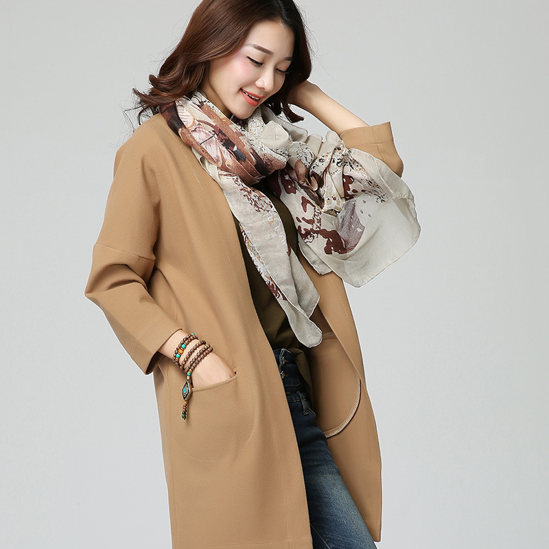 2015秋季韓國東大門女裝新品翻領中長款女士風衣女大衣外套女 /
